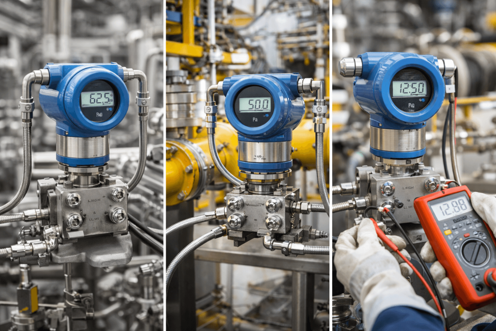 Ein moderner Differenzdrucktransmitter wandelt den gemessenen Druckunterschied in ein elektrisches Signal um, das an eine Steuerung, ein Leitsystem oder eine Anzeige weitergegeben wird. So können Prozesse automatisch überwacht und geregelt werden.